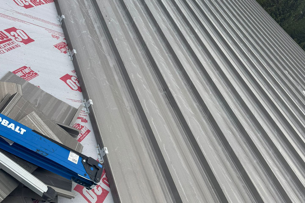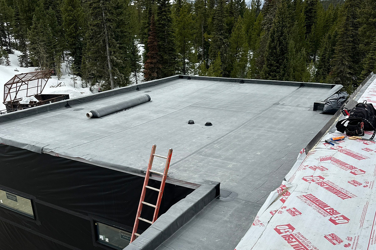 Our scope included high-temp underlayment, mechanically locked 2″x10″ standing seam panels, EPDM on low-slope areas with added slope for drainage, and detailed finishing work like chimney flashing, snow retention, and ballast. Every element was overengineered to ensure long-term durability and peace of mind, backed by a 2-year labor and 10-year material warranty.
